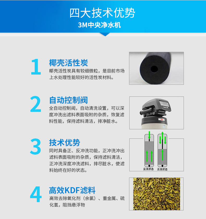 ●全自動控制閥,自動清洗設置,可深度沖洗出濾料表面吸附的雜質●同時具備正、反沖洗功能,使濾料始終在好的狀態●高效KDF濾料,高效去除氧化劑(余氯)、重金屬、硫化氫,阻擋懸浮物">